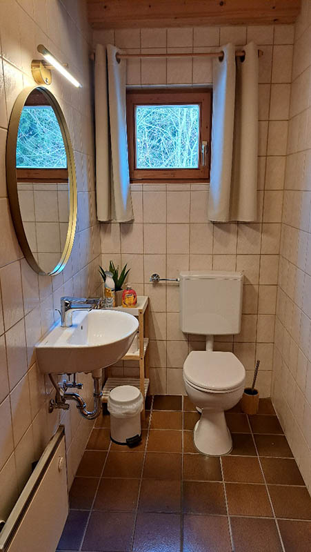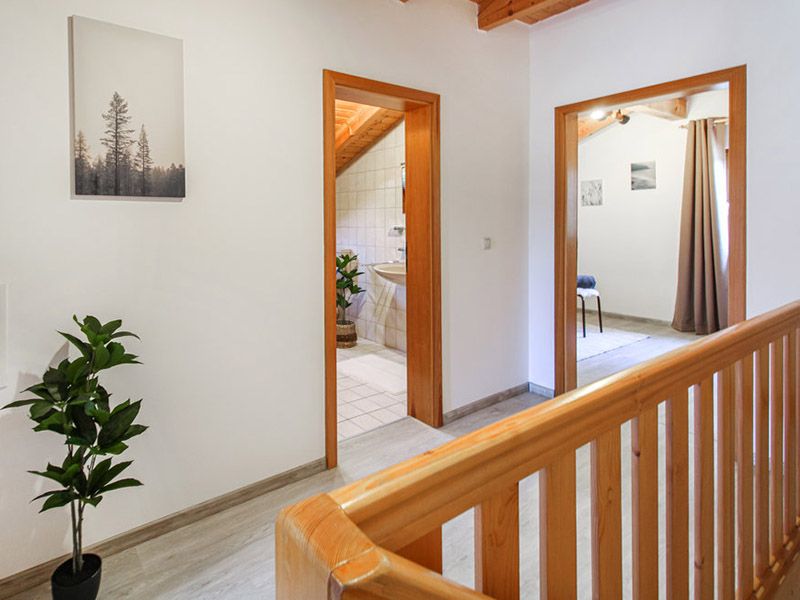 Das ruhige, am Waldrand gelegene, sehr gemütliche Haus hat 2 Schlafzimmer mit je einem Doppelbett. Außerdem steht eine Schlafcouch im Wohnzimmer, eine separate Matratze und ein Kinderreisebett zur Verfügung. Im Erdgeschoss finden Sie ein sehr gemütlich eingerichtetes Wohnzimmer mit modernem elektrischen Kaminofen und einem zusätzlichen Holzofen zum selbst einheizen und eine voll eingerichtete, neue Wohnküche mit Essecke. Brennholz inklusive. Im Eingangsbereich gibt es eine Garderobe, einen großen Flur mit weiteren Kleiderhaken und Regal, einen Abstellraum, ein kleines WC und den Treppenaufgang. Im Obergeschoss liegen die beiden geräumigen Schlafzimmer mit Doppelbetten – eines mit Zugang zum Balkon. Die Schlafzimmer wurden 2023 renoviert und mit neuen Möbeln ausgestattet. Zwischen den Schlafzimmern liegt das große Badezimmer mit Dusche.